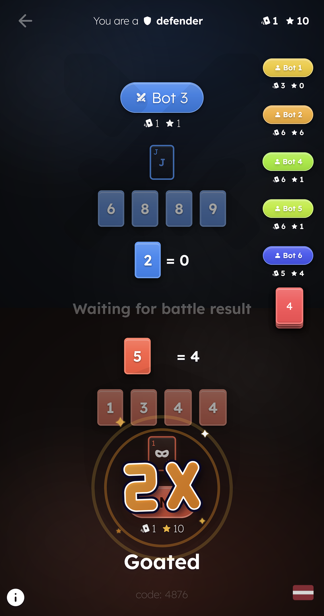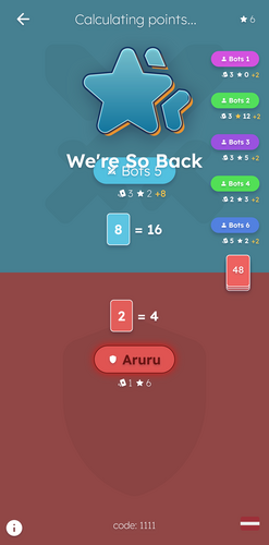 Prior, bettors see both cards and choose whom to support. Correct votes yield bettors' points and a random joker.